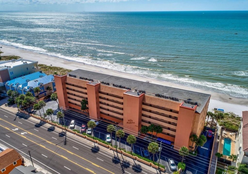 Experience refined coastal living at Villa Madeira, where timeless elegance meets the effortless beauty of Florida's Gulf Coast. This exceptional 3-bedroom, 2-bath residence, perched on the fifth floor, showcases sweeping, unobstructed views of the turquoise waters of the Gulf and the pristine sands of Madeira Beach. Bathed in natural light, the thoughtfully designed interior offers an open-concept layout enhanced by soft coastal finishes and an inviting, sophisticated ambiance. Fully furnished and impeccably maintained, this residence is equally suited as a primary home, an elegant vacation retreat, or a HIGH-PERFORMING INVESTMENT property. Villa Madeira's desirable one-week minimum rental policy presents a rare opportunity for consistent income generation in one of Florida's most sought-after beachfront communities. The spacious primary suite is a private sanctuary, opening to breathtaking beachfront vistas-an idyllic setting to begin each day with the gentle sound of waves and warm coastal light. Two additional bedrooms provide generous accommodations for guests and family. Everyday convenience is seamlessly integrated with in-unit laundry and quality finishes throughout, ensuring a truly move-in-ready experience. An expansive screened-in balcony extends the living space outdoors, offering a serene setting for morning coffee, evening entertaining, and unforgettable sunsets over the Gulf. Here, the rhythm of the ocean becomes part of daily life, creating an atmosphere of tranquility and escape. Villa Madeira enhances the lifestyle with a collection of resort-style amenities, including a HEATED BEACHFRONT POOL, sun deck, elevator access, and assigned COVERED PARKING, all complemented by DIRECT BEACH ACCESS. Constructed with durable concrete block and structural steel, the building has successfully completed its Milestone inspection, providing added confidence and peace of mind. Recent improvements-including a new roof (2025). Ideally positioned, the residence is just moments from the charm and vibrancy of John's Pass Village & Boardwalk. Living in Florida offers more than just a home-it is a lifestyle defined by year-round sunshine, coastal breezes, and a relaxed yet refined pace of life. From morning walks along the shoreline to vibrant waterfront dining and endless outdoor recreation, Madeira Beach embodies the very best of Gulf Coast living. This is a rare opportunity to own a distinguished beachfront residence where every detail reflects comfort, quality, and the enduring allure of life by the sea.