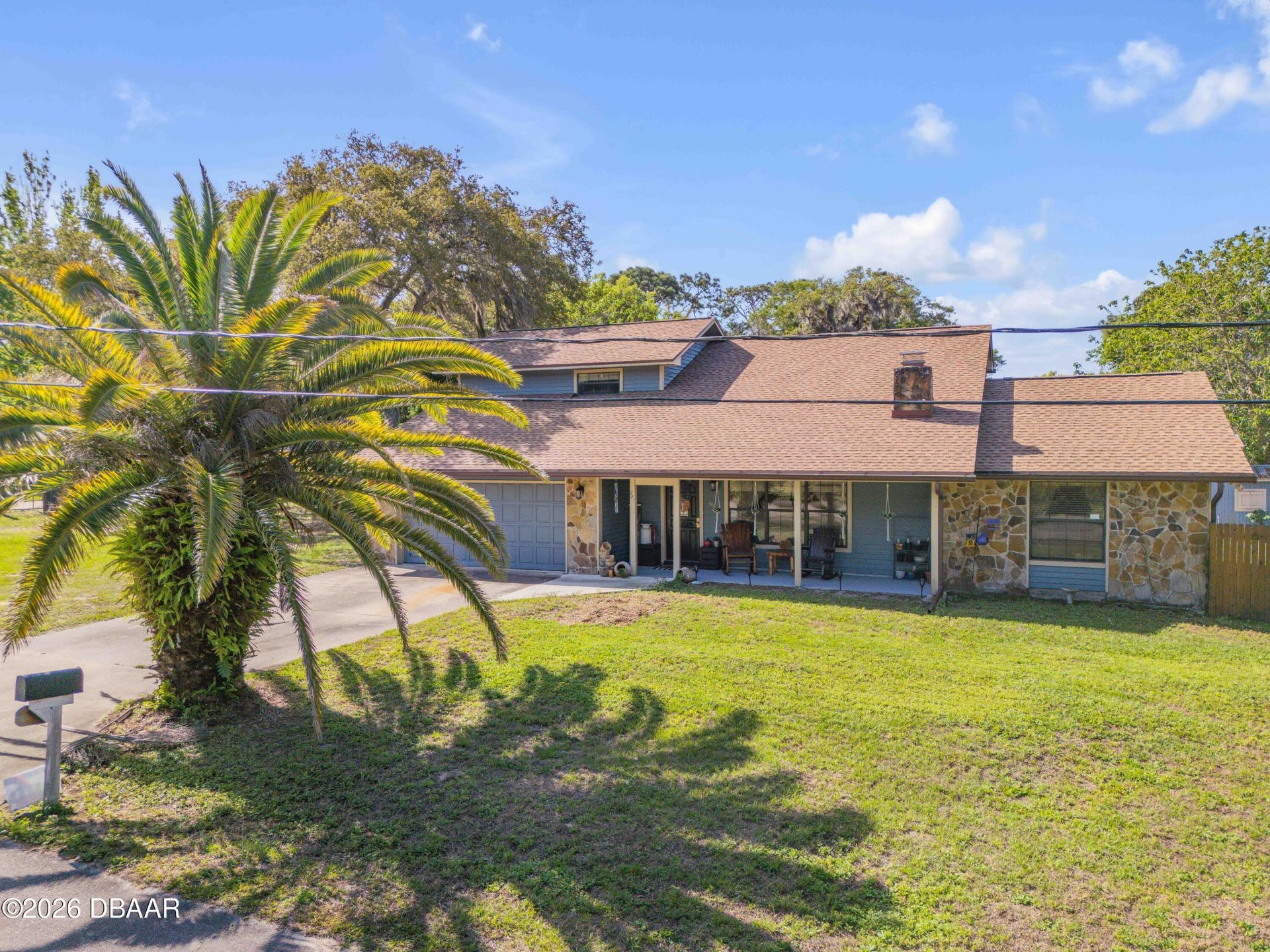 Tucked away on a quiet dead-end road in Oak Hill, this charming 3-bedroom, 2-bath home offers the perfect blend of privacy, space, and laid-back Florida living. Step inside to a bright, open-concept layout where the kitchen, dining, and living areas flow seamlessly together, deal for both everyday living and entertaining. A large kitchen island provides ample prep space and seating, while the cozy stone fireplace creates a warm focal point in the living room. Vaulted ceilings and abundant natural light enhance the home's airy, welcoming feel, and an inside laundry room adds everyday convenience. The private upstairs primary suite offers a peaceful retreat, set apart from the main living areas, perfect for unwinding at the end of the day. Outdoors, you'll find your own backyard oasis. The screened-in pool is perfect for year-round enjoyment, whether relaxing in the shade or hosting gatherings. Just beyond, a spacious wooden deck sets the stage for cookouts, evenings around the fire pit, or simply soaking in the quiet surroundings. The fenced yard offers privacy and room to roam, while the 8x10 storage shed provides additional space for tools, toys, or hobbies. Ideally located, this home is just a short drive to Burns Science and Technology Charter School, a highly sought-after public charter known for its strong academic performance and STEM-focused curriculum, consistently earning high marks for student achievement and parent satisfaction. Additional highlights include a new roof in 2023 for peace of mind and a location that truly delivers. Enjoy an easy commute to the Space Coast and quick access to world-famous Mosquito Lagoon, often referred to as the redfish capital of the world making this a dream spot for fishing enthusiasts and outdoor lovers alike. With its spacious layout, inviting indoor-outdoor living, and exceptional location, this home offers a rare opportunity to experience the very best of coastal Central Florida living.